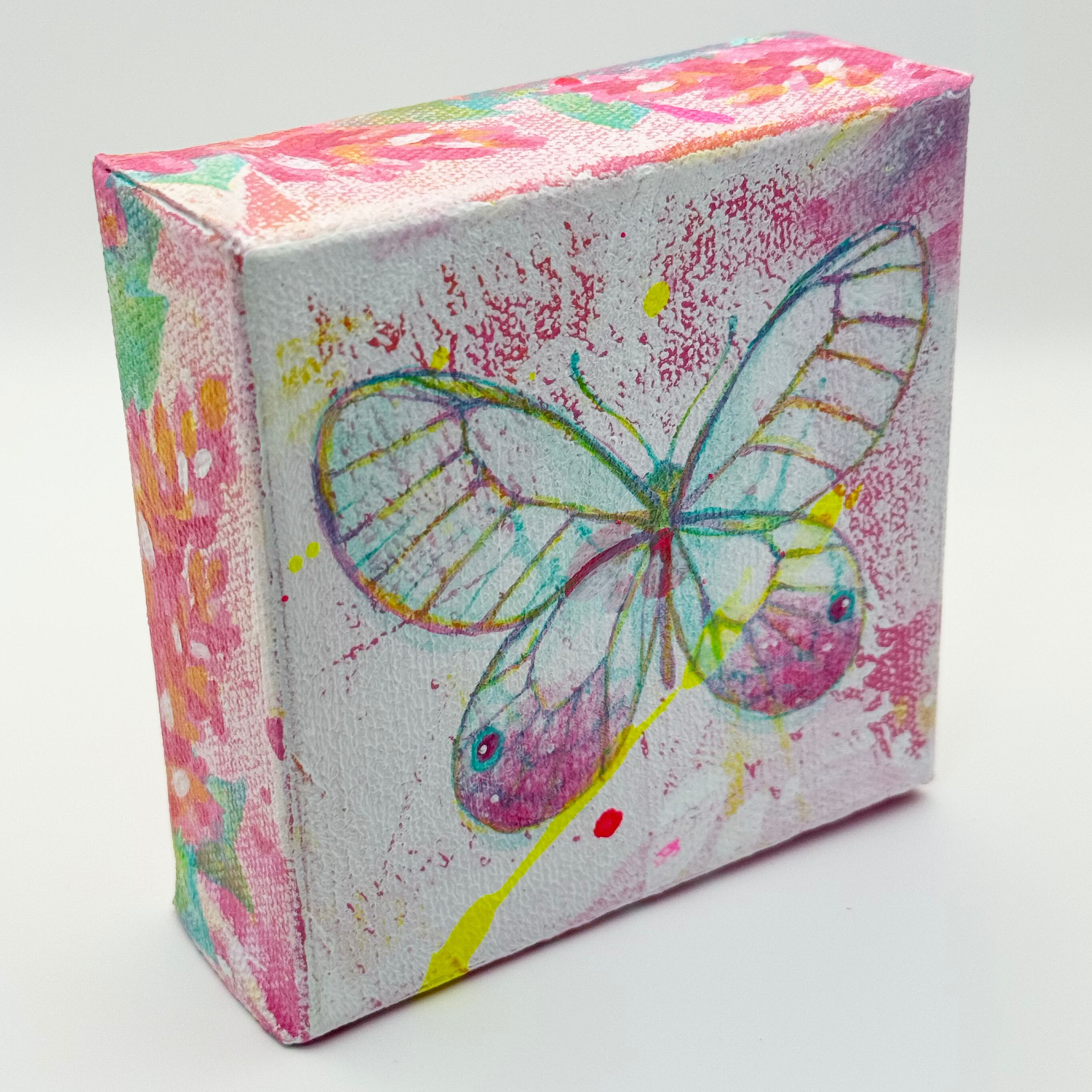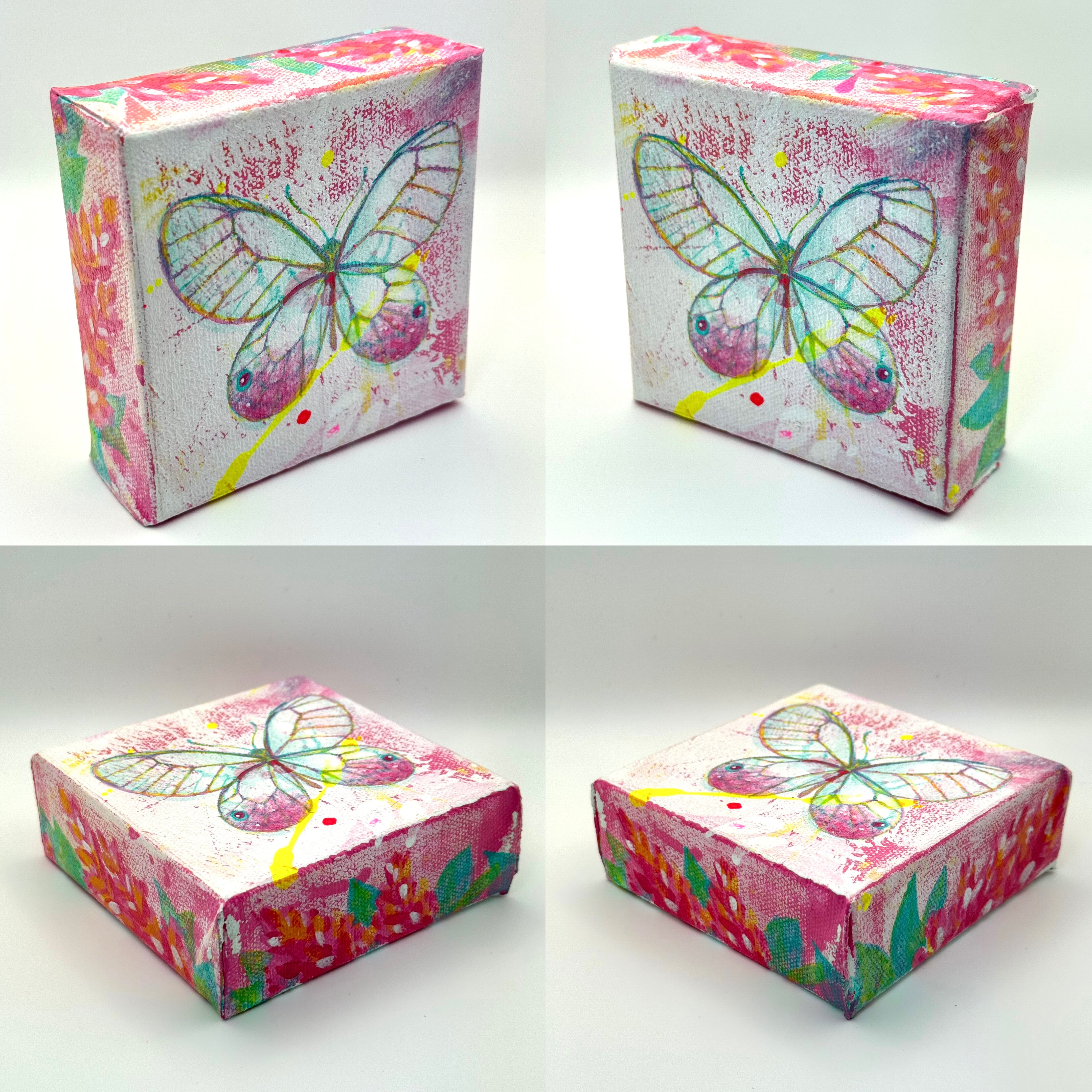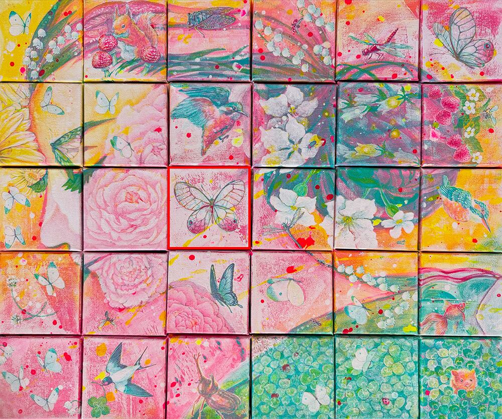 南米に生息する透明の羽を持つベニスカシジャノメ。美しいその姿を飾りたいという思いを絵にしました。