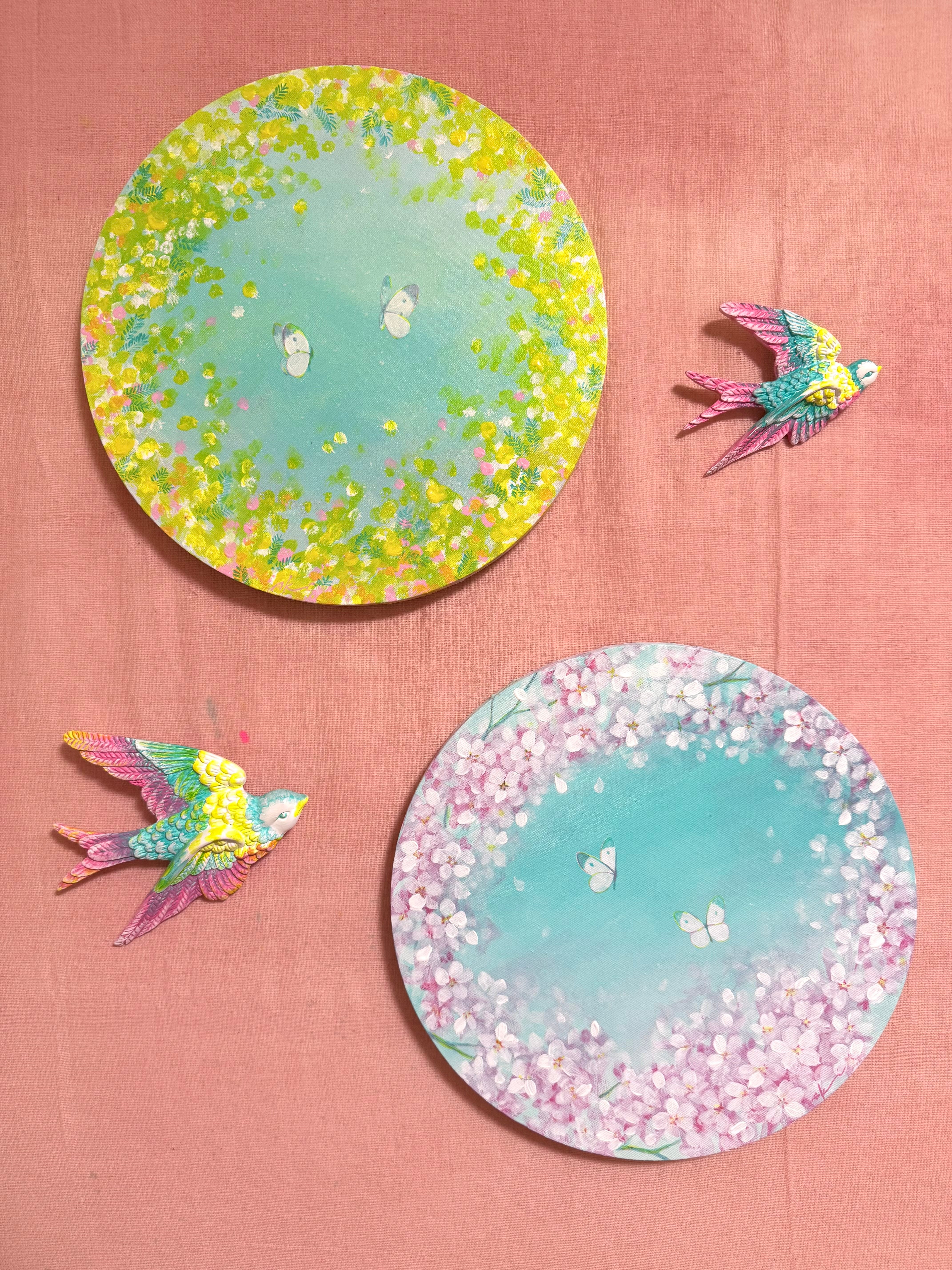 2025年作「ミモザリースのモンシロチョウ」の対となる作品として、新たに制作しました。